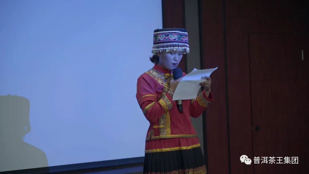 来自云南普洱市茶王集团农村合作社代表黄燕萍代表她的父母和茶农,介绍了在普洱茶王集团带领下,普洱市景谷县茶农脱贫致富感人故事。